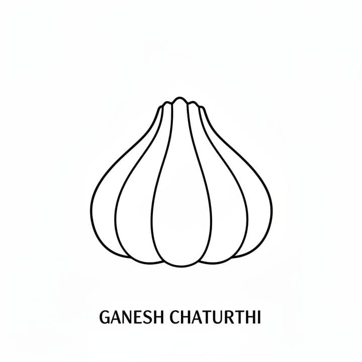 A simple line drawing depicts a Modak, a sweet dumpling popular in India. Its distinctive shape, composed of rounded segments converging at the top, is clearly outlined. The image evokes a sense of ce...Read more