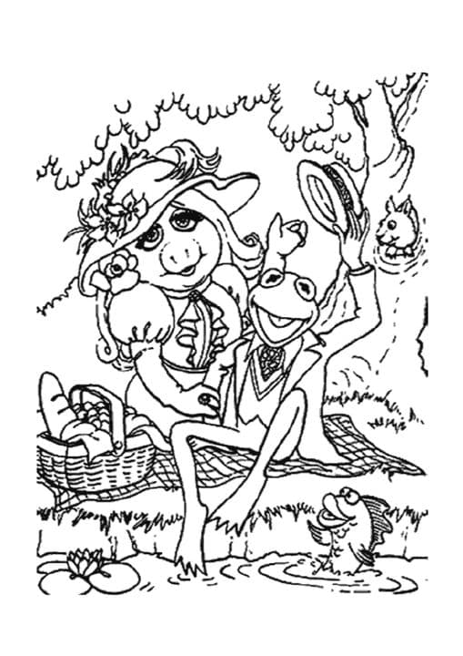 This black and white illustration depicts two cheerful frog characters enjoying a picnic in nature. One frog is sitting on a blanket, waving a hat, dressed in a suit and tie, while the other frog wear...Read more